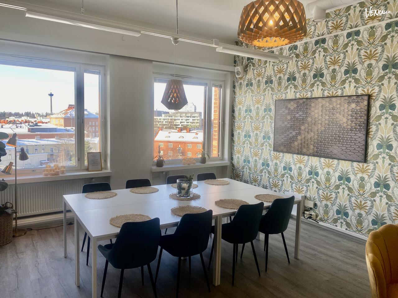Tila sopii kahdenkeskisiin palavereihin, aamiaistapaamisiin, tiimipäiviin tai vaikka inspiroivaan Wine & Paint -iltaan.