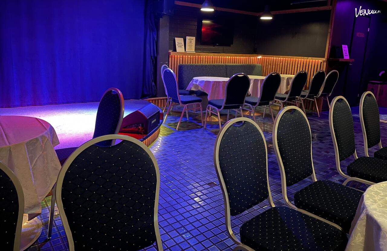 Yökerhomme puolelle mahtuu (ilman sillipurkkiefektiä) noin 35 hlö ja pubin puolelle myöskin 35 hlö. Kesäisin laaja sekä viihtyisä terassimme lisää paikkamäärää vielä noin 40 henkilön verran.