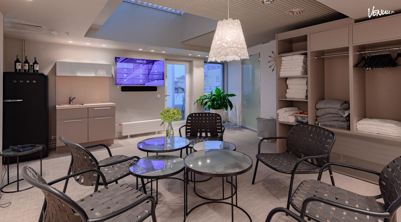 Tyylikäs Royal Sauna sijaitsee Radisson Blu Royal -hotellin 7. kerroksessa, Helsingin kattojen yllä – tarjoten upeat näkymät kaupungin ylle. Saunan lempeistä löylyistä nauttii kerrallaan jopa 10 henkilöä, ja tilaan kuuluu lisäksi viihtyisä oleskelualue, jossa on mukava rentoutua ennen tai jälkeen saunan.