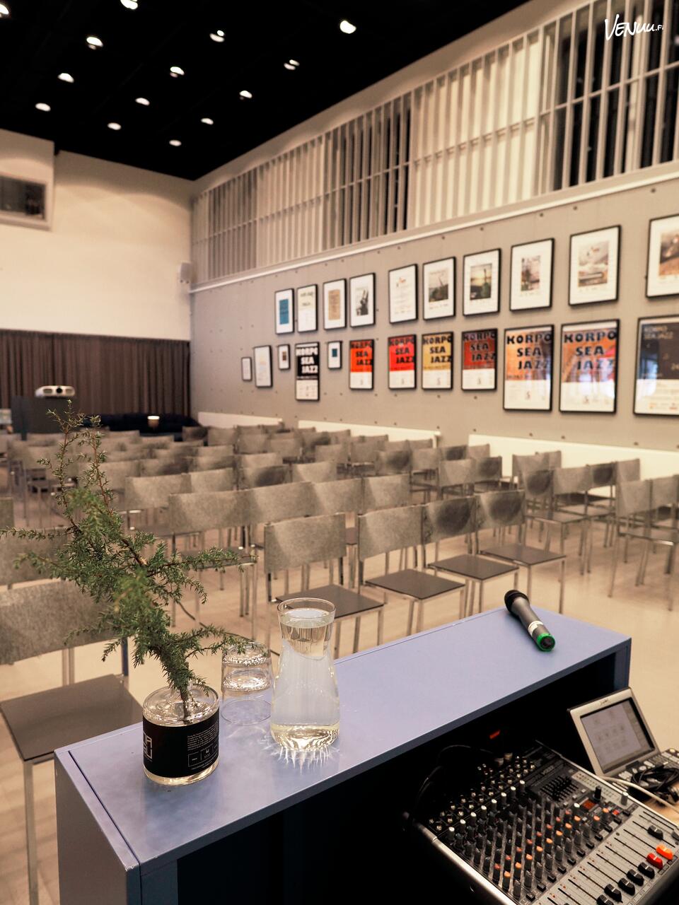 Auditorio on varustettu isolla valkokankaalla, projektorilla ja äänentoistojärjestelmällä mikrofoneineen, mikä takaa sujuvan ja ammattimaisen tapahtumakokemuksen. Tilaa voidaan hyödyntää sekä keskustelupainotteisiin tilaisuuksiin että esityksiin, ja sen joustavat kalusteratkaisut tukevat monenlaisia tapahtumia.