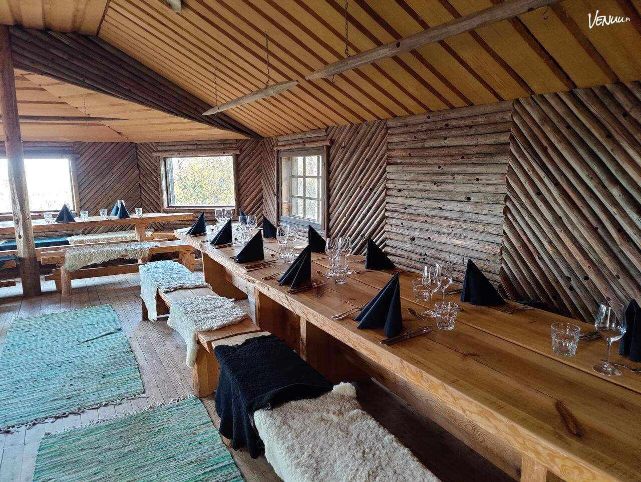 Sisustus on kotoisa ja lämmin, puupöydät, kynttilät ja taljat luovat viihtyisän ilmapiirin. Pitkät pöydät mahdollistavat sujuvat kokoukset ja yhdessä syömisen, ja palvelu mukautuu ryhmän tarpeisiin. Tilan kotoisuutta tukee ja lisää taljat penkin lämmikkeinä sekä katosta roikkuvat lyhdyt ja kyntteliköt, jotka valaisevat tilan lämpimästi, luoden uniikin kokous- ja juhlatunnelman.