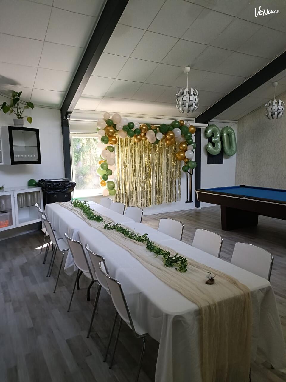 Voin täysin suositella Villa Metsälää juhlapaikkana! Saman katon alta hoitui monipuolinen juhlatila koristeluineen ja pitopalveluineen unohtamatta ystävällistä ja joustavaa palvelua. Täyskymppi!